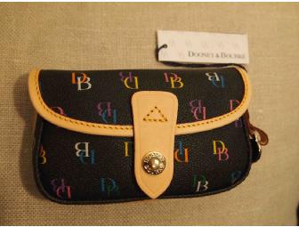 Elegant black wristlet by Dooney & Bourke in their signature logo pattern. Tags attached. 6"L x 3.5"W.