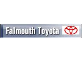 This $100 Gift Certificate to Falmouth Toyota may be used for services or towards a purchase at Falmouth Toyota in Bourne, MA.