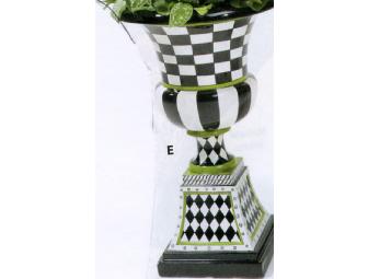 The look of hand-crafted ceramic, without the fragility or weight. The pedestal urn's harlequin pattern is artfully painted, then given a weatherproof polyurethane coating to replicate the glazed appearance of kiln-fired pots. Use in a protected area to preserve the lustrous sheen. Measures 16 1/4" diameter by 26 1/2 " height. Weighs 12 pounds.