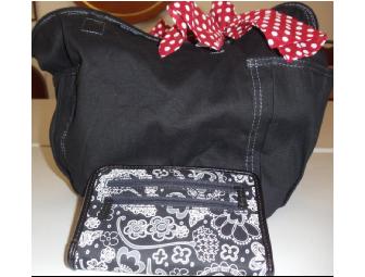 You will be very stylish with this lovely black Retro Metro Bag with a red and white polka dot scarf! It also comes with a Timeless Wallet in a black and white design.