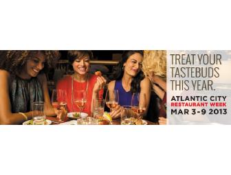 Atlantic City Restaurant Week is a seven-day celebration of the culinary scene in Atlantic City. For the week of March 3-9, 2013, participating restaurants will offer a multi-course meal for the fixed price of $15.13 for lunch and $33.13 for dinner (not including beverage, tax and gratuity).
