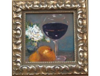 This peaceful painting, created expressly for the Phil!Tastic, is a beautifully framed 6 x 6 original oil painting. A wonderful gift or a great addition to your own home and favorite place for relaxing with a glass of wine.