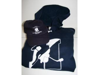 This item is an XL Navy Hooded Wounded Warrior Sweatshirt and Champion Baseball Cap donated by the Middlebury College Hockey Team after their Weekend Warrior event at Middlebury College.