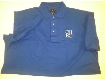 This auction is for a 100% cotton, blue 'polo' style shirt with the OHRC logo embroidered on the left chest.