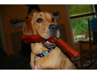 Doggy basket filled with treats for your pet and 8 weeks of Scoop Diggity Dog services.