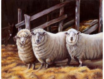 "Henry and the girls" is a 9" x 11" framed giclee print on canvas panel.