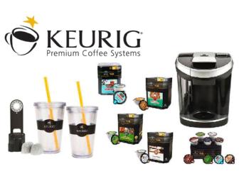With the Keurig Vue system, you get the single-serve brewer with interactive touchscreen display, 66 Vue packs and a water filtration kit. And, for your convenience, it comes with two 16-oz. iced coffee tumblers to get you started right out of the box.