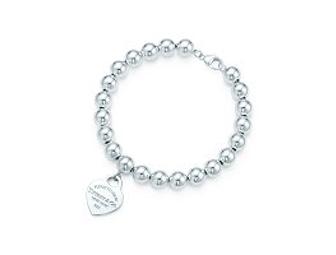 Return to Tiffany™ Bead Bracelet. Inspired by a design from 1969, this celebrated collection bears an inscription that reminds one that there's no place like Tiffany. Small heart tag in sterling silver on a bead bracelet. 7.5" long. Beads, 8 mm.