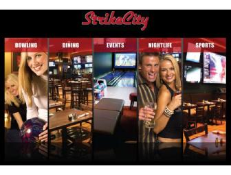 Bowling, dining, night life & private events. Next Generation Bowling! StrikeCity features a bowling experience like none other. Everything about bowling at StrikeCity is high tech and cutting edge. The furniture is stylish and comfortable and you will get nothing but excellent food, service and hospitality.