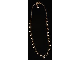 Repurposed vintage costume jewelry necklace with faux pearls, rose quartz beads and crystals. Approximately 19".