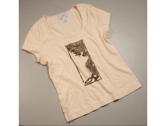 t-shirt block printed (hand-carved wood block, original design) bonsai/twisted tree print on sage-green M size Ann Taylor LOFT 100% cotton t-shirt.