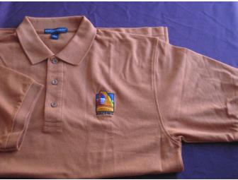 Orange Arches National Park short sleeve polo shirt, size large.