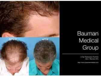 Certificate good for 500 grafts. Subject to medical evaluation by internationally-recognized Hair Restoration Physician, Dr. Alan J. Bauman, M.D., Medical Director of Bauman Medical Group located in Boca Raton, Florida since 1997. Some patients may require additional treatments or procedures.