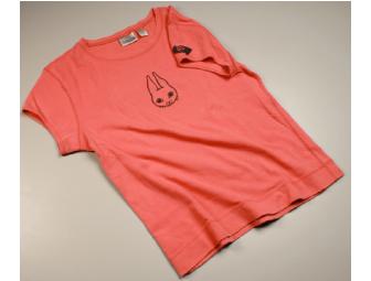 Block-Printed Rabbit Print on Salmon T-Shirt