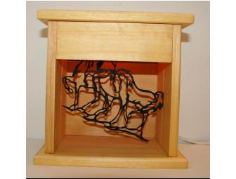 This item is a lighted shadow box with three horses. It is 8" X 8".