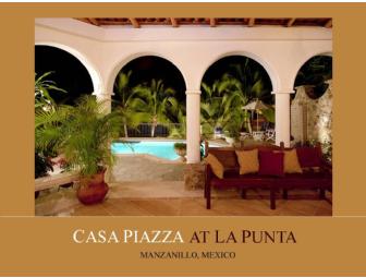 Enjoy a seven-night (Saturday to Saturday) stay year-round at Casa Piazza, a private 5-bedroom, 6.5 baths, and 8,000 square foot luxury villa. Located in La Punta, an exclusive gatedoceanfront community. La Punta is on the Santiago Peninsula &is surrounded by both the Manzanillo & Santiago Bays. The community is a mix of impressiveprivate estates, lush tropical plants & a pristine beach. The colorful port City of Manzanillo is just30 minutes away. Manzanillo a located 150 miles south of Puerto Vallarta & is an easy non-stop 3hr. flight from LAX. The villa's staff includes a private chef who will prepare daily meals to your taste and accommodate your special dietary needs (cost of food & beverages in NOT included).