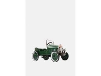Your special youngster will have fun, fun, fun tooling around in this cool green pedal car. This is a classic American design with the distinctive body shape, headlights, bumpers, rubber tires, and chrome detailing of the 1930's . Features adjustable pedals to grow with your child, is painted and constructed with nontoxic materials and is child tested to insure the safety of your child. Simulated gauges complete the simulation of an old time car. Also, it's 4-H Green!