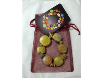 Lovely handcrafted polymer clay bracelet with sterling silver accents.