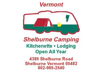 This certificate entitles the winner to a 1 or 2 night kitchenette lodging Sunday thru Thursday at Shelburne Camping in Shelburne, VT.