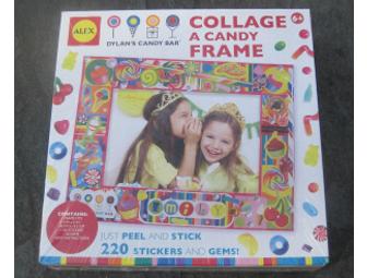 Decorate a delicious picture frame with candy stickers and sparkling gems! Create a sweetly unique place to hold your favorite photos. It's so easy and fun to do, just layer up tons of brightly colored candy stickers. Add sticky gems and cute ABC stickers to personalize! 220 stickers and gems include signature Dylan's Candy Bar patterns and colors, ABC stickers, name tag frames, plus lots of candies, cookies, cupcakes and other confections. You'll have plenty of stickers left over to use for other projects and personalizing cards, notebooks or whatever else you think needs sweetening up! Includes a glossy frame that holds a 4" x 6" photo, 220 stickers and gems, and easy instructions.