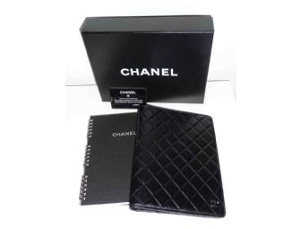 Classic Chanel black leather agenda cover with three refill notepads. Carte d'Authenticite included.