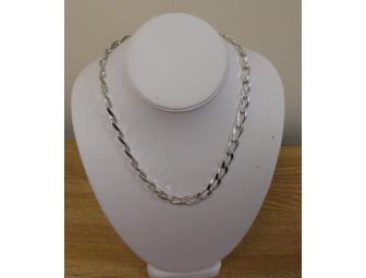 This is a silver chunky chain necklace that works well with many outfits.