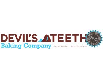 There are very few things better on Earth than starting a morning with a cup of coffee and some hot beignets. Use this Gift Certificate for $40 at Devil's Teeth Baking Company to start your day off right. Open Wednesday through Monday, Devil's Teeth serves Breakfast and Lunch from 7-4. Devil's Teeth is located at 3876 Noriega between 45th and 46th. Start your mouth watering at www.devilsteethbakingcompany.com.