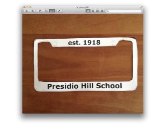 Take home a one of a kind piece of PHS memorabilia. Everyone will be jealous of you when you surround your license plate with this beautiful solid brass frame that shows you are a proud member of the Presidio Hill School community!