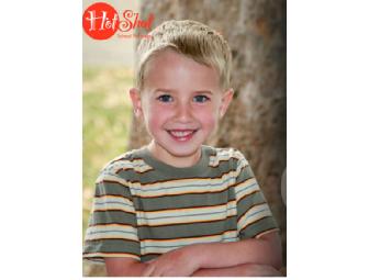 Photographic portrait session in your home or location with HotShot Portraits. In addition, if HotShot portraits is contacted within two weeks of the event, an 8 X 10 custom print (black and white or color) of any image from the portrait session will be included. Additional images are available for purchase. See their work at www.hotshotportraits.com.