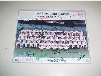 1993 Atlanta Braves Team Autographed Baseball Photo (30 signatures). Signatures include Chipper Jones, Hank Aaron, Tom Glavine, John Smoltz, Dave Justice, Greg Maddux, etc. Comes with Certificate of Authenticity.