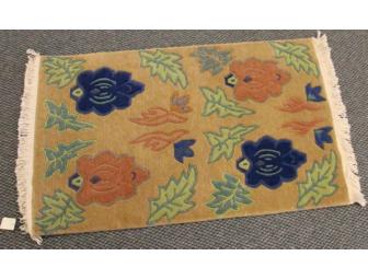 This is a beautiful 2'x3' hand-knotted area rug crafted by Tibetans in India. 60 knots per square inch.