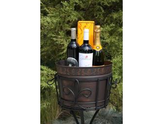 Be ready for you next party or BBQ this summer with this wonderful entertaining bucket and stand. We've filled it with three of your favorite wines to get the party started: a Veuve Clicquot Ponsardin Champagne, a Chappellet 2010 Cabernet and a Silver Oak 2006 Cabernet. Stand comes apart for easy storage and is 31" tall. Copper rubbed bucket fits inside, but can be used alone on a tabletop and is 13" in diameter by 9" tall and includes its own drip tray.