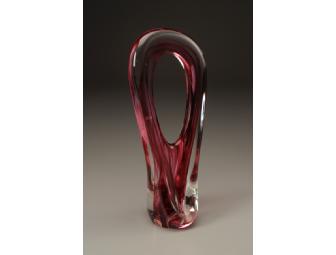 Beautiful red glass sculpture by artist Jim Karg. The piece is signed and dated, 2002.