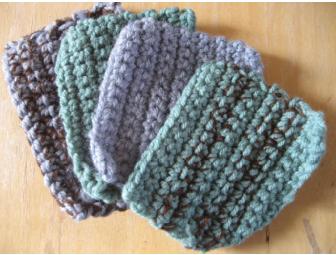 Set of 4 handmade re-usable cast iron cleaning pads. Can also be used in place of a standard sponge. Crafted with acrylic yarn- machine washable! 4 different color patterns.