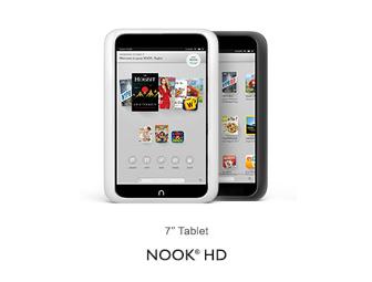 The Nook HD has a 7" fully laminated HD screen, expandable memory, and the always important parental controls.