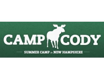 Certificate for a two-week session at Camp Cody. Camp Cody is a premier traditional New England Summer Camp founded in 1926. Nestled on the sandy beaches of beautiful Lake Ossipee amidst the White Mountains of New Hampshire, Cody offers a summer experience rich in fun, friendship, learning and adventure. A traditional summer camp for both girls and boys. Cody’s campers attend from New England, across the USA, and a dozen countries.