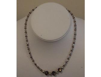 This is a beautiful silver and purple crystal beads necklace made by CCA parent Cara Harding.