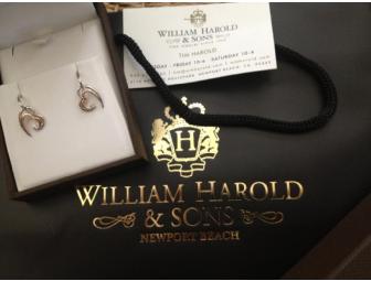 Beautiful pair of two tone 14k gold open heart drop earrings with diamonds.
