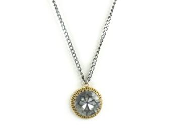 Juicy Couture Jewelry FACETED PENDANT NECKLACE retail $88 from Bellabacci on 15th Street on the Balboa Peninsula. A romantic compliment to any daringly draped top or plunging V-neckline,our vintage-inspired pendant features a solitary glimmering bauble, framedwith a golden halo at the center of a ribbon-tie link chain. Striking! WOW! Super fun! crystal 2 x 2 inches, 32 inch adjustable chain with ribbonadjuster.Silver Plate w Swarovski Crystals for sparkle!! In gift box.