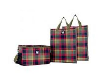 Love Bag- Rad Plaid Chill Set 3 bags in 1 The bag you'll never forget! Chill Set 3 bags in 1- Rad Plaid.. green, black, red... The 3-bags-in 1 set includes an insulated thermal cooler with two sturdy, reusable and washable shopping bags that hold up to 60 lbs. The cooler is designed with side mesh pockets for storage and an adjustable shoulder strap for comfort. The shopping totes inside Stand Up on their own for easy loading and unloading. Fashion and function .... 8" h x 13"w x 8" d