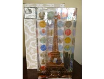 Unique Eiffel Tower Flower Vase by "Fringe Studio" ...rectangle shape clear glass with Eiffel Tower collage. Very unique gift..perfect for anyone!