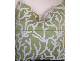 Unique custom made throw pillow! Light Green background with off white/cream coral design.