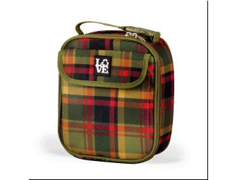 Love Bag Lunch Box- Rad Plaid Love Bag Lunch Munch ...perfect lunch box for any kid!! Rad Plaid- red, black, green plaid pattern. Insulated, with an interior mesh blue ice pocket and an exterior flap pocket, it also has a quick-clip handle so you can easily attach it to your backpack or bag. 10H x 8.5W x 4D