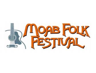 One pass for the ENTIRE Moab Folk Festival, including entrance to the festival grounds at the Moab Center Street Ball Field, all daytime performances, two evening performances at the GCHS Auditorium, and all daily Festival workshops.