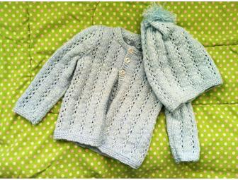 This darling, intricately detailed baby sweater features 100% cotton yarn. Size 0-3 months. Washable in cold water.
