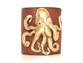 Melvin Designs Custom Jewelry: Brown Leather Cuff with Gold Octopus