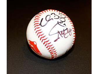 Baseball signed by Red Sox pitchers, #41, John Lackey, #11, Clay Buchholtz, and former Red Sox right fielder, J.D. Drew