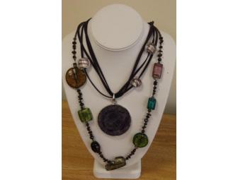This is a beautiful set of two handmade rose and stone beaded necklaces.