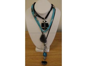Three African bead inspired necklaces in Azule, Turquoise and Onyx.
