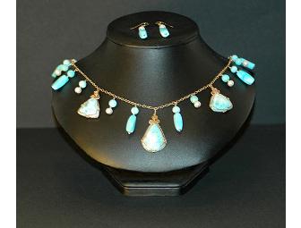 Gold filled, Peru Opal and Pearl Necklace and Earring Set
